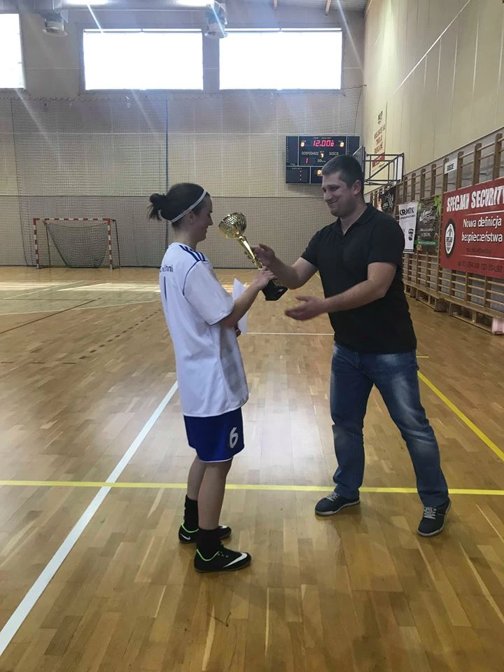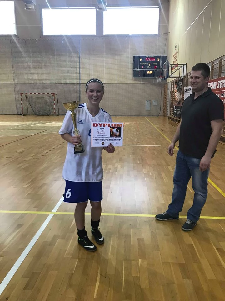Our girls’ football team won first place in the County High School Championships in indoor football. On April 5, in the sports hall in Bochnia, the County High School Championship in indoor girls’ football was held . The competition was played in the peer-to-peer system. In the final scoring of the competition, the representation of our school took first place and won the Championship.
