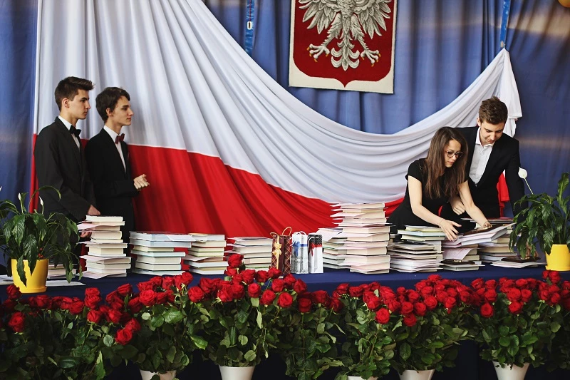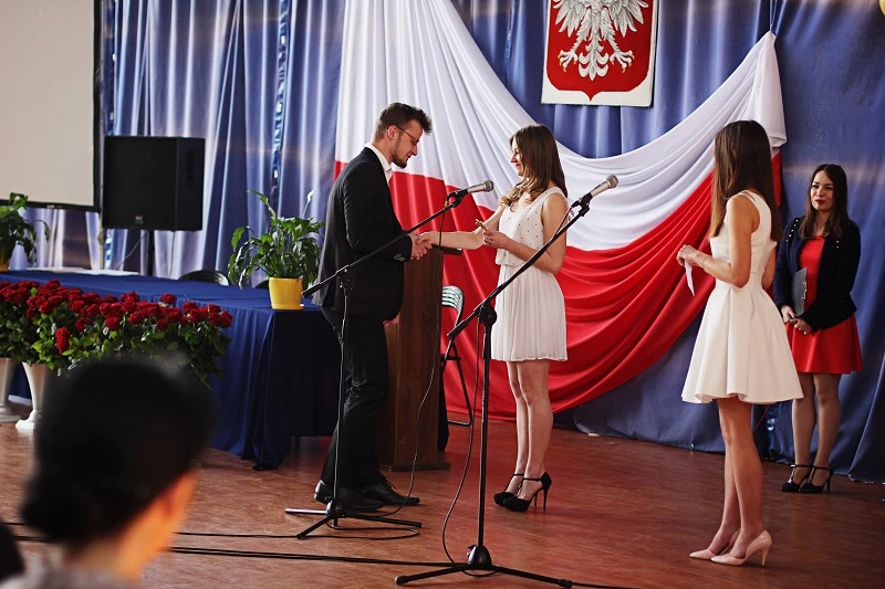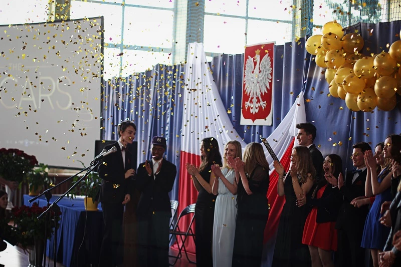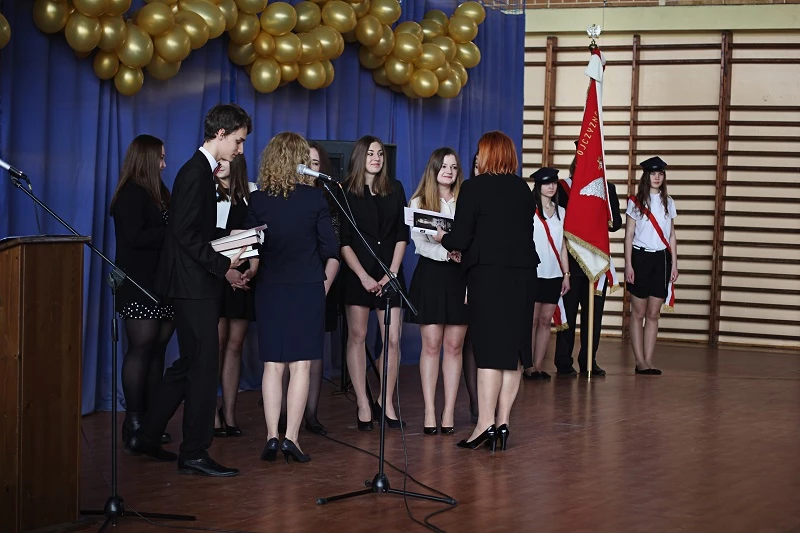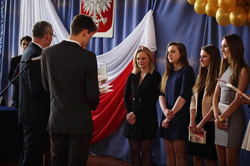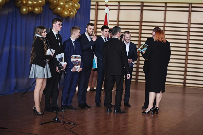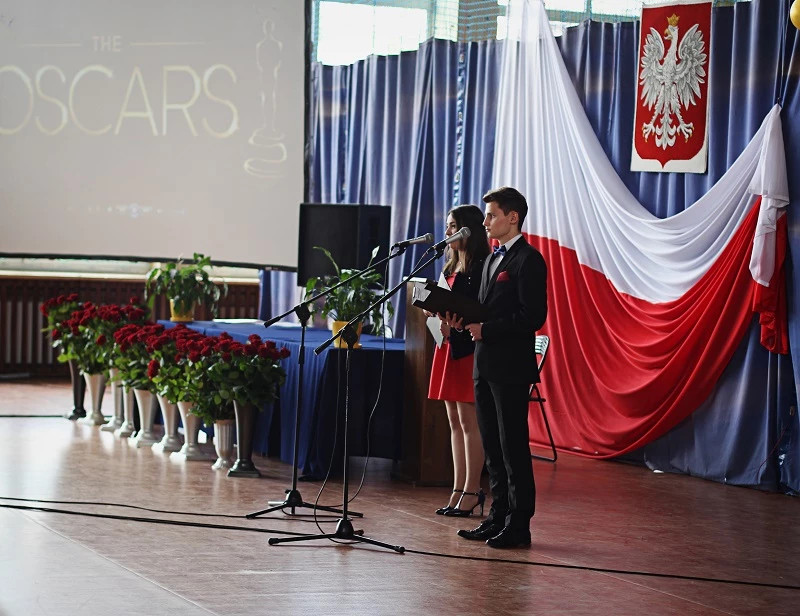 This year 281 students have finished education at our school. Almost 100 of them received special distinction and got prizes for their achievements. Some of them have already been offered places at the best universities thanks to their participation in contests. Filip Struzik, Justyna Cyrankiewicz and Joanna Możdżeń were in the final stage of the national contests. And there was also another group of students whose grade point average was above 5,0. At the end, there was a performance prepared by class 2c which looked like an Oscar awards ceremony and there were prizes given for the best short films prepared by different classes.