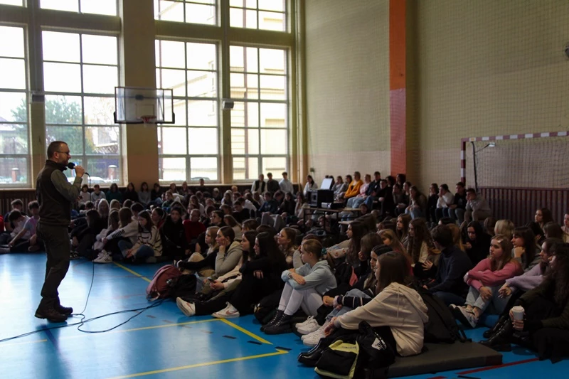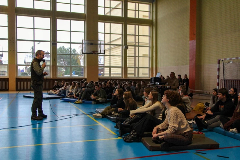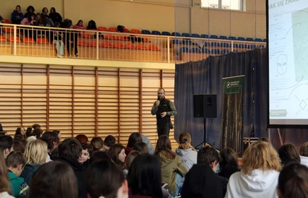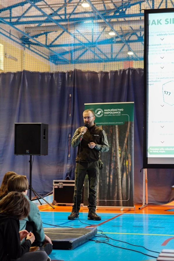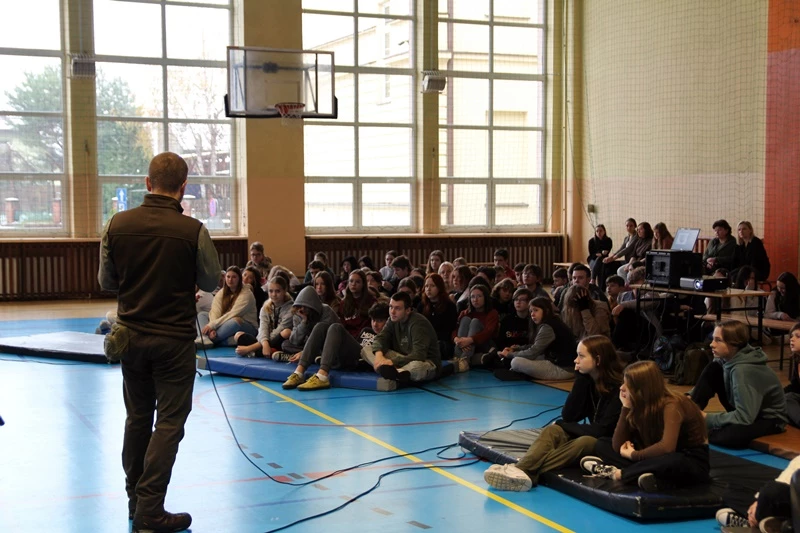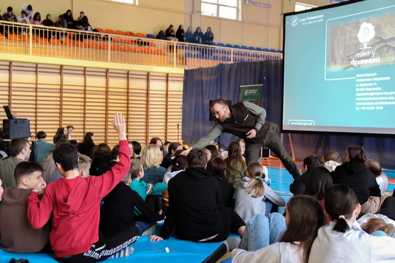 W naszej szkole odbyła się prelekcja pt: ,,Czas w las", którą poprowadził pan Michał Wieciech - leśnik w Nadleśnictwie Niepołomickim z dwunastoletnim doświadczeniem. Gościnnie w Liceum pojawili się także uczniowie klas ósmych ze Szkoły Podstawowej nr 1 w Bochni. Lekcja dotyczyła między innymi tego co zrobić, by nie zgubić się w lesie, a jeżeli już się zgubimy to gdzie szukać pomocy oraz co zrobić, gdy będąc wśród drzew złapie nas burza. Podczas wydarzenia uczniowie mogli zadawać pytania i podzielić się swoimi spostrzeżeniami odnośnie tego czego się dowiedzieli. Na końcu nasz gość zachęcił do odsłuchania ,,Podcastów między drzewami", w których opowiada o wielu innych faktach i ciekawostkach dotyczących lasów. Bardzo dziękujemy panu Michałowi za podzielenie się z nami swoją wiedzą.