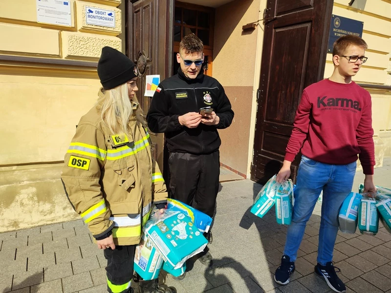 Kartony z przekazanymi rzeczami odebrali druhowie z OSP w [tutaj podać skąd byli], którym bardzo dziękujemy za pomoc.