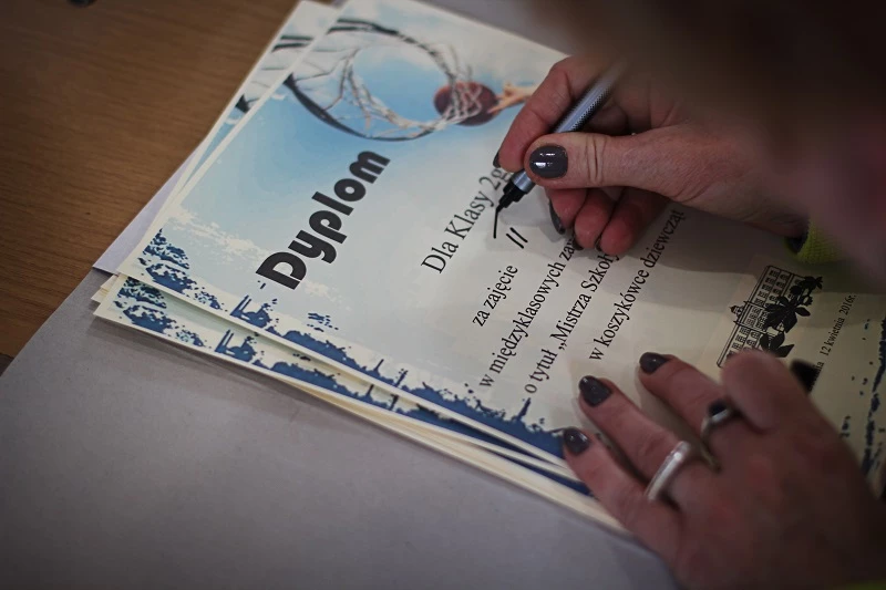 On April 12th girls from class 3i won the school basketball tournament. In the final was also the team from class 2g who got the second place and the team from class 1a who ended up on the third place. The event was organized by P.E. teacher Ewa Jodłowska.