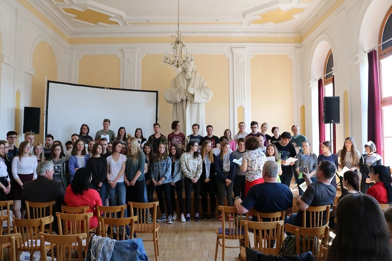 Between 16th and 18th April 36 of our students went to the Czech Republic to take part in the finals of the Mathematical Task League and Queen's Language Competition. We visited Nove Mesto na Morave and after the competition we had time to go sightseeing and socialize with our Czech peers. During the second day we got a chance to see the Punkvy caves and an interactive museum in Brno. On the last day we visited the castle and sanctuary in Zdziar. We did not win either of the competitions but we enjoyed the trip thoroughly because it was a great way to meet new people and see new places.