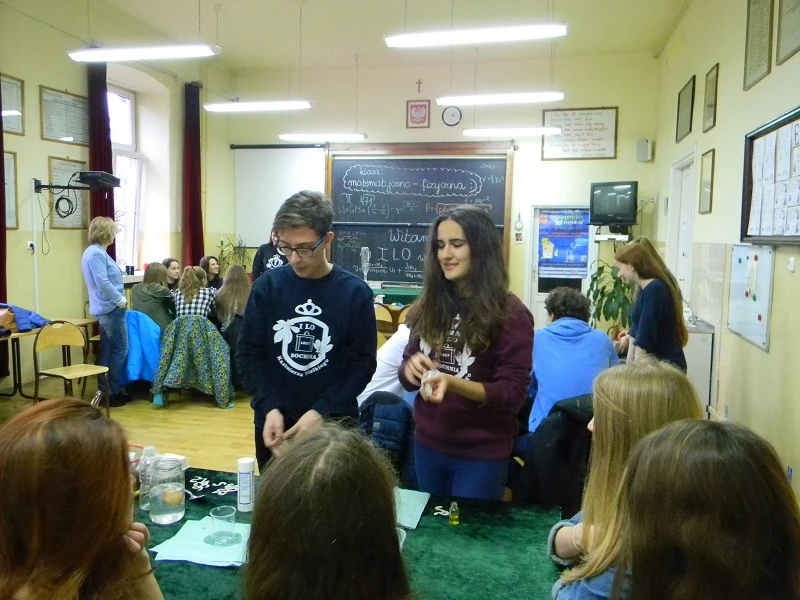 16 grudnia 2015 r. zaprosiliśmy do 1LO uczniów z Gimnazjum nr 1 oraz Gimnazjum nr 2 w Bochni na spotkanie z cyklu: „Licealiści – Gimnazjalistom”. Poprowadziliśmy warsztaty matematyczne pt. : „Fraktalny świat” oraz przeprowadziliśmy pokaz ciekawych doświadczeń fizycznych.