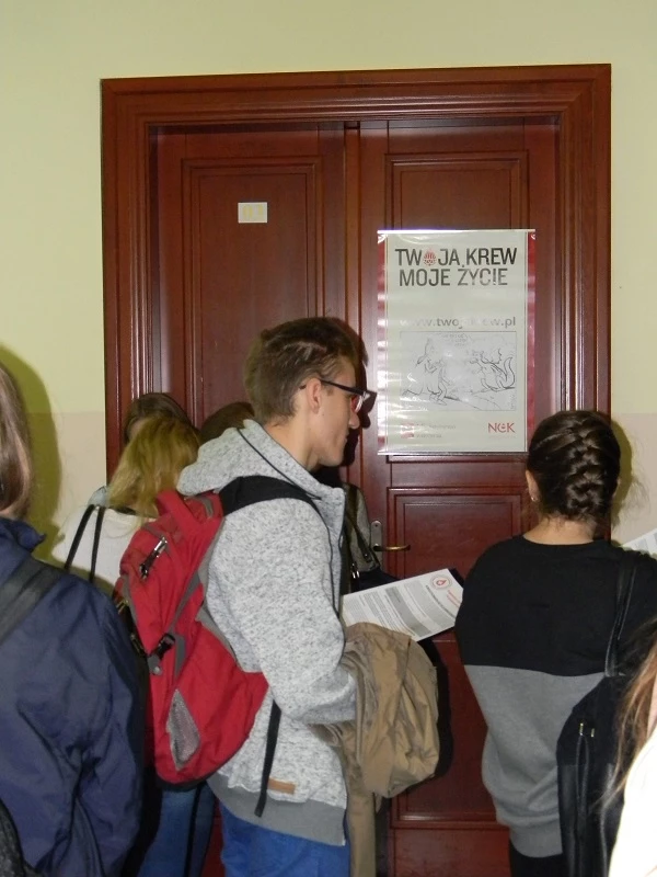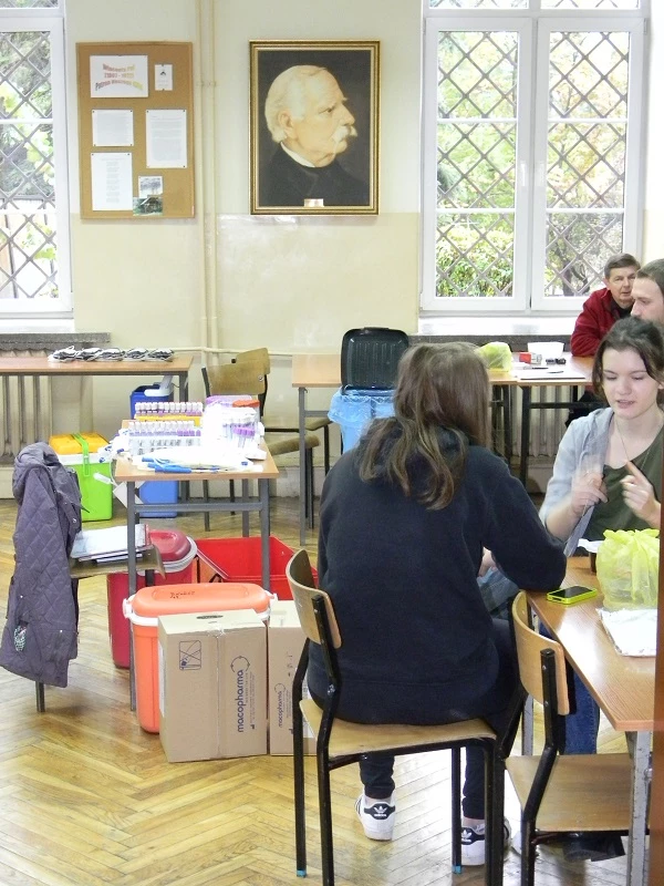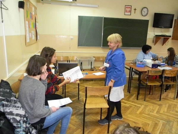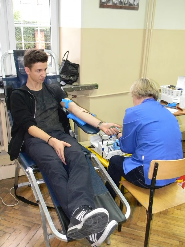 Also this year our school has organized blood donation among our students. We were really surprized with the outcome. There were as many as 40 students from the third grade willing to donate blood. In the end 24 students did it and we would like to thank them for 11 litres of this priceless liquid. We also apologise to all those who could not donate today, and at the same time we encourage them to do it at the local hospital in Bochnia.