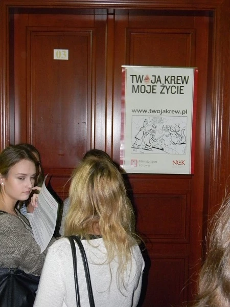 W dniu dzisiejszym tj. 21. października w naszej szkole odbyła się akcja krwiodawstwa, zorganizowana przez Szkolny Klub Honorowych Dawców Krwi we współpracy z Regionalnym Centrum Krwiodawstwa i Krwiolecznictwa. W punkcie krwiodawstwa zorganizowanym w salach 03-04 zarejestrowało się ponad czterdzieści osób, jednak ostatecznie krew oddało 24 uczniów z klas trzecich. Większość z nich robiła to po raz pierwszy, jednak wszyscy, którzy się na to zdecydowali, zasługują na słowa wielkiego uznania. Maturzyści wykazali się niezwykłą dojrzałością i podeszli do sprawy bardzo poważnie – ich odwaga została nagrodzona kilkoma tabliczkami czekolady, pamiątkową koszulką oraz oczywiście ogromną satysfakcją, płynącą z bezinteresownej chęci podzielenia się najcenniejszym darem, jakim jest krew.