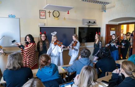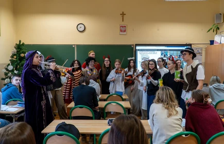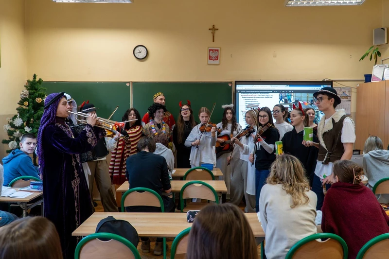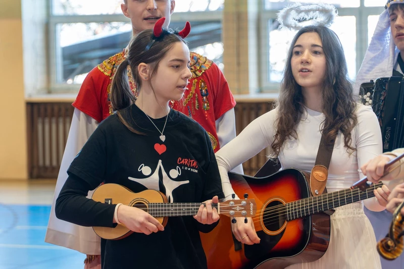 Wolontariusze z szkolnego koła Caritas w piątek 17 stycznia odwiedzili swoich kolegów i koleżanki w klasach, aby pomóc za pomocą muzyki. Środki ze zbiórki, tak samo jak w poprzednim roku, zostaną przeznaczone na hospicjum im. św. Łazarza w Krakowie. Na chwilę obecną udało się zebrać 1249,05 zł i 2 euro, lecz to jeszcze nie jest koniec kolędniczej wędrówki naszych wolontariuszy.
