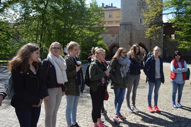 On Wednesday, the German group went to Auschwitz-Birkenau concentration camp where they paid tribute to the memory of all those who died in this place. Thursday brought a much better weather and the students went to Kraków for a sightseeing trip. Our German friends were delighted with the city and enjoyed both listening to the legends and shopping. During next days they participated in Biology lessons, learnt how to shoot an air-gun and said goodbye to the school leavers from the third class of our school. Friday was also the day when the German group went back to Ibbenbüren. Now our students are looking forward to June when they will go to visit their new German friends in their country.