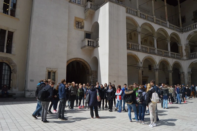 W czwartek 28.04 już wszyscy razem przy cudownej pogodzie zwiedzaliśmy najciekawsze zakątki Krakowa. Duże wrażenie na naszych gościach zrobił piękny Kraków z legendami o smoku wawelskim i hejnale z wieży Mariackiej, Rynek krakowski, Wawel i Muzeum UJ Collegium Maius. Czas wolny, był rajem dla dziewcząt, które mogły poszaleć po sklepach. Cały tydzień wszyscy tryskali dobrym humorem i nikt nie narzekał na trudy wycieczek. To jednak nie koniec wrażeń, bo po powrocie czekało nas ognisko, które jeszcze bardziej niż do tej pory zbliżyło nas do siebie. Wspólne tańce, śpiewy i dobre jedzenie, pomimo zmęczenia wprawiły wszystkich w dobry nastój.