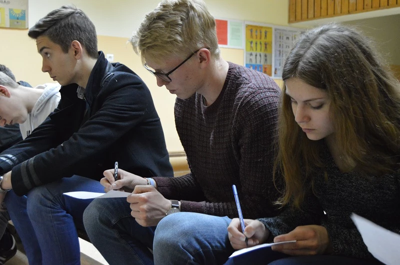 29.04 był ostatnm dniem wymiany , który spędziliśmy w szkole, jedna część grupy niemieckiej uczestniczyła w lekcji biologii prowadzonej przez panią Magdalenę Kutscherę ,a druga uczyła się strzelać z wiatrówki na zajęciach edukacji dla bezpieczeństwa ,pod nadzorem pana Artura Jaszczyńskiego. Potem dokonaliśmy ewaluacji projektu. Uczniowie zapisywali swoje spostrzeżenia, które są zawsze cenną wskazówką podczas organizacji kolejnego spotkania. Na kartkach pojawiło się dużo miłych i ciepłych słów, dając tym samym wyraz swojego zadowolenia. Potem zjedliśmy pożegnalny obiad i wróciliśmy do szkoły, by uczestniczyć w pożegnaniu maturzystów. Pomimo, że nasi partnerzy niewiele rozumieli z przemówienia pani Dyrektor i części artystycznej, to jednak udzieliła im się atmosfera tej uroczystości. Teraz pozostaje nam tylko uzbroić się w cierpliwość i poczekać do czerwca, kiedy to pod opieką pani Anny Marciszewskiej-Jaszczyńskiej i pani Moniki Pachuty- Nosal pojedziemy z rewizytą do Ibbenbüren. Pożegnanie nastąpiło na dworcu, kiedy to ze łzami w oczach obiecywaliśmy sobie, że do czerwca będziemy utrzymywać stały kontakt. W Niemczech, zmieni się dla nas tylko miejsce, cała reszta pozostanie ta sama, świetni ludzie, super opiekunowie, niezapomniany klimat. Nie możemy się już doczekać rewizyty.
