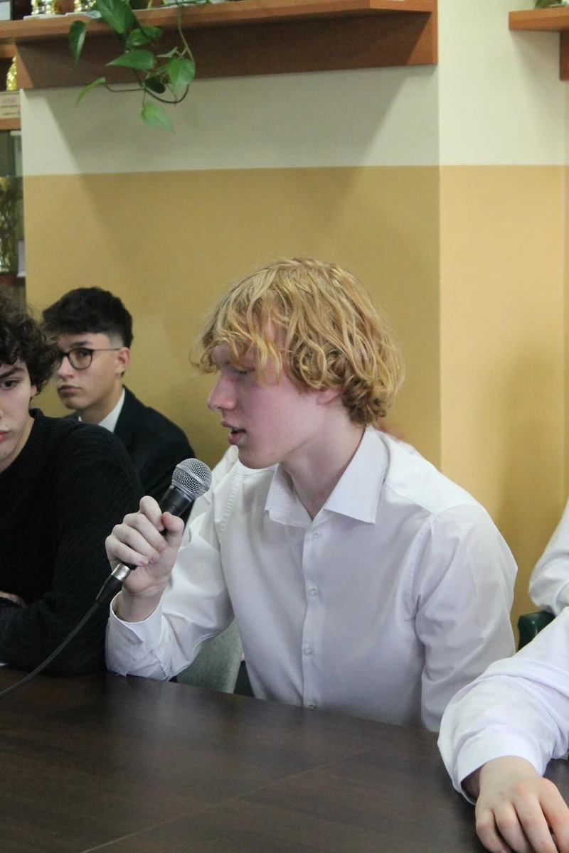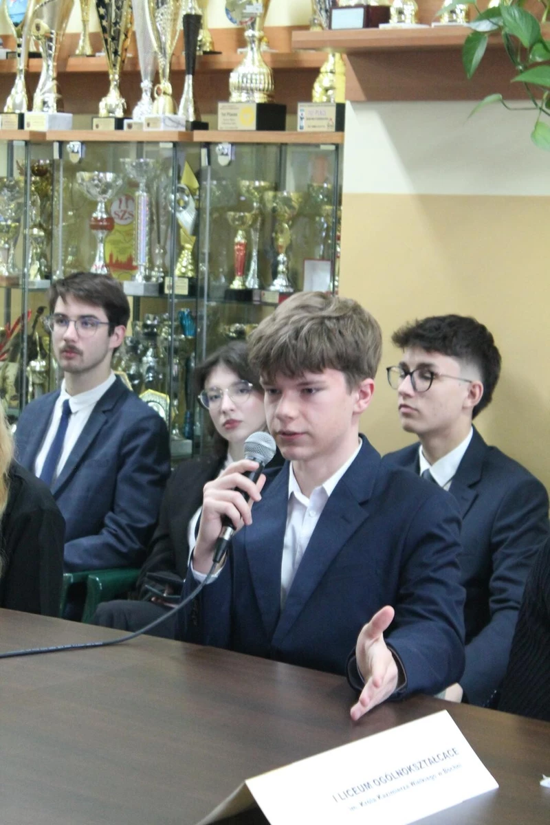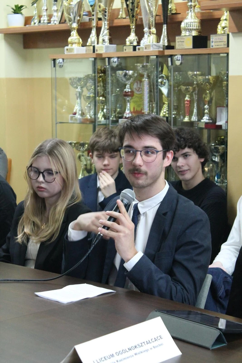 Uczniowie naszej szkoły wzięli udział w debacie "Młodzi o współczesnej edukacji". W spotkaniu uczestniczyli uczniowie wszystkich szkół ponadpodstawowych Powiatu Bocheńskiego, a nasze liceum reprezentowali: Aleksandra Kłosowska z klasy 4i, Eryk Bobowski z klasy 4b oraz uczniowie klasy 3b: Kajetan Chyla, Miłosz Gnyla, Dawid Kołodziej, Piotr Legutek, Zuzanna Pudełko, Bartosz Szydłowski i Stanisław Trojak.