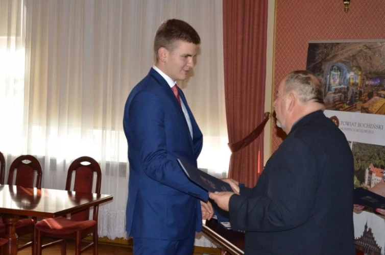 Starosta bocheński Ludwik Węgrzyn rozdał uczniom nagrody za szczególne osiągnięcia sportowe oraz nagrody za zajęcie czołowych miejsc we współzawodnictwie sportowym szkół ponadgimnazjalnych Powiatu Bocheńskiego w roku szkolnym 2016/2017.