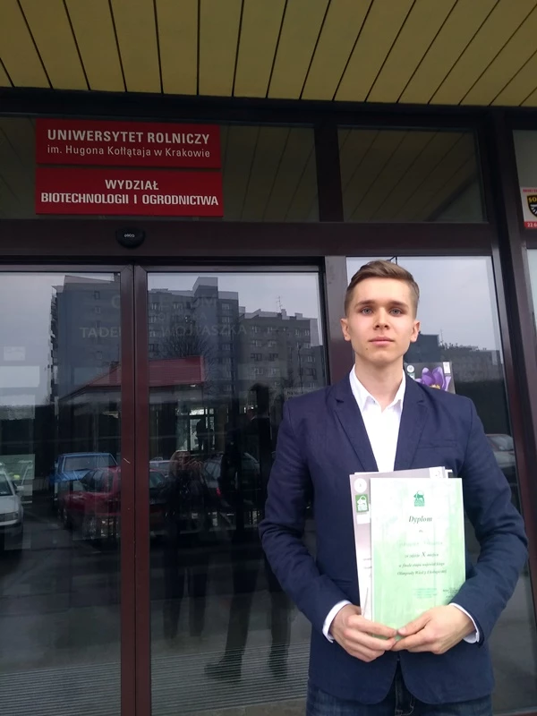 On April 4, at the Faculty of Biotechnology and Horticulture of the University of Agriculture in Krakow, the regional stage of the XXXIV Ecology Olympiad was held. The organizer of the contest was the Warsaw University of Life Sciences in Warsaw with the support of the Ministry of the Environment and units of the League for Nature Conservation. The goal of the Olympiad was to shape ecological awareness and appropriate attitudes of young people. Regional eliminations involved a written part, in which each participant did a written test consisting of 50 tasks, and the oral part. 12 of the best participants were qualified for the oral part. We are happy to announce that tha student of our school Grzegorz Przywara won 10th place and was awarded the title of finalist. We congratulate Grzegorz and wish him further successes.