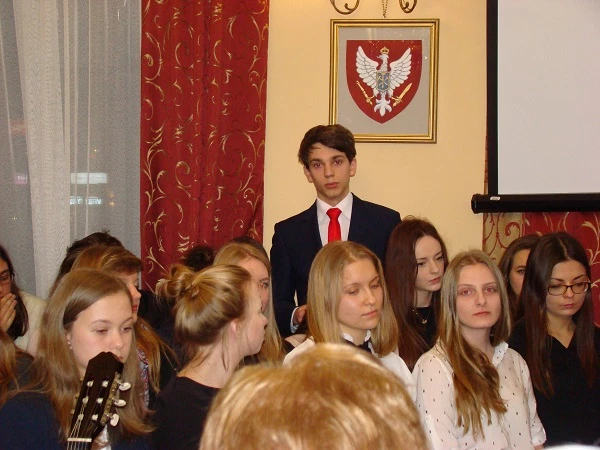 Students from class 2i recited again the 12th book of our national epic „Pan Tadeusz”. This time it was on February 24th in front of the Society of Friends of Bochnia. There was also a special performance of a choir. The meeting was quite exceptional as it connected a few generations.
