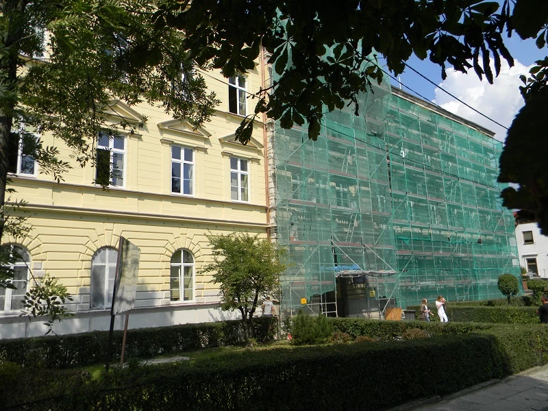 Z dnia na dzień, po wielu latach oczekiwania, pięknieje fasada naszej szkoły. Mimo, że roboty budowlane wiążą się z utrudnieniami i niedogodnościami widać postępy. Jeszcze miesiąc i będziemy mieli piękny budynek szkoły. Nie koniec na tym. Szkoła otrzyma oświetlenie zewnętrzne, system kamer monitoringu zewnętrznego i ... czeka nas przebudowa klombów przed szkołą. Wreszcie znajdą się tam ławeczki. Później już wszystko w naszych rękach.