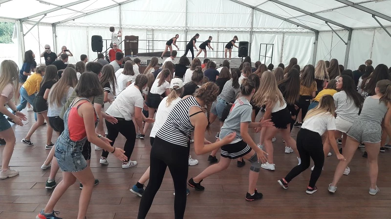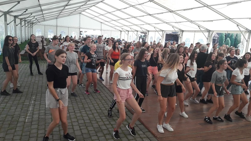 Ostatni etap przemienienia i integracji końcowej, odbył się przy pomocy muzyki. Koleżanki ze szkolnej grupy tanecznej, poprowadziły młodszych kolegów do tańca, prezentując na scenie elementy taneczne dostępne swą łatwością dla każdego przeciętnego człowieka. Zumba, belgijka, aerobic, tańce dyskotekowe i samodzielna inwencja twórcza uczestników spotkania integracyjnego, królowały na parkiecie. Tańcom i hulankom nie było końca. Nawet przyjazd autokarów nie przemawiał do rozbawionej młodzieży. Ale w końcu trzeba było zakończyć naszą wesołą akcję scalenia obcych dotychczas sobie młodych ludzi, w społeczność uczniowską 1 Liceum Ogólnokształcącego im. Króla Kazimierza Wielkiego w Bochni. Wszyscy szczęśliwie dotarli do domów, i , jak wieść niesie, z zadowoleniem wspominali chwile spędzone na ,, Integracyjnym Pikniku Klas Pierwszych’’.