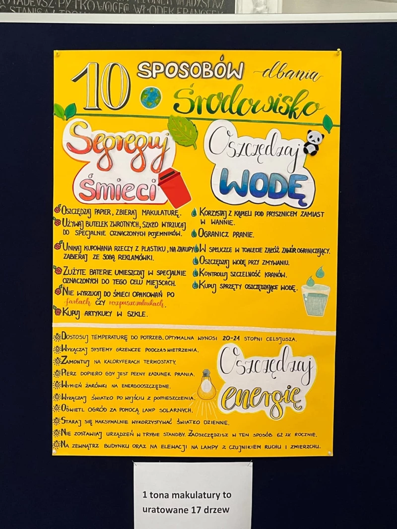 Nasze działania nie mają oczywiście jedynie wymiaru teoretycznego - w ciągu następnych trzech tygodni odbędzie się seria warsztatów oraz wymiana przedmiotów codziennego użytku. Czeka nas podróż, zaczęta od segregacji odpadów, po której poznamy upcycling, kończąc na sadzeniu kwiatów oczyszczających powietrze, dzięki którym łatwiej odetchniemy po ostatnim dzwonku.