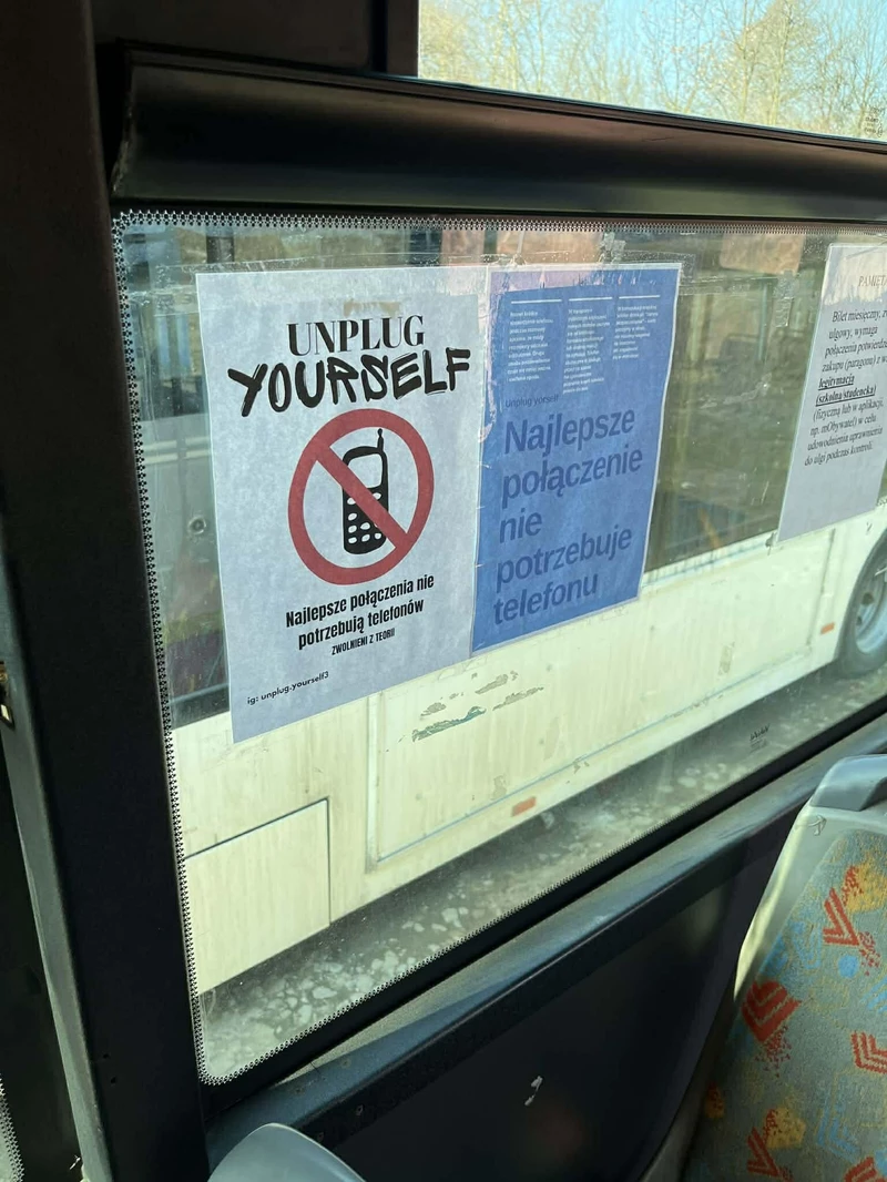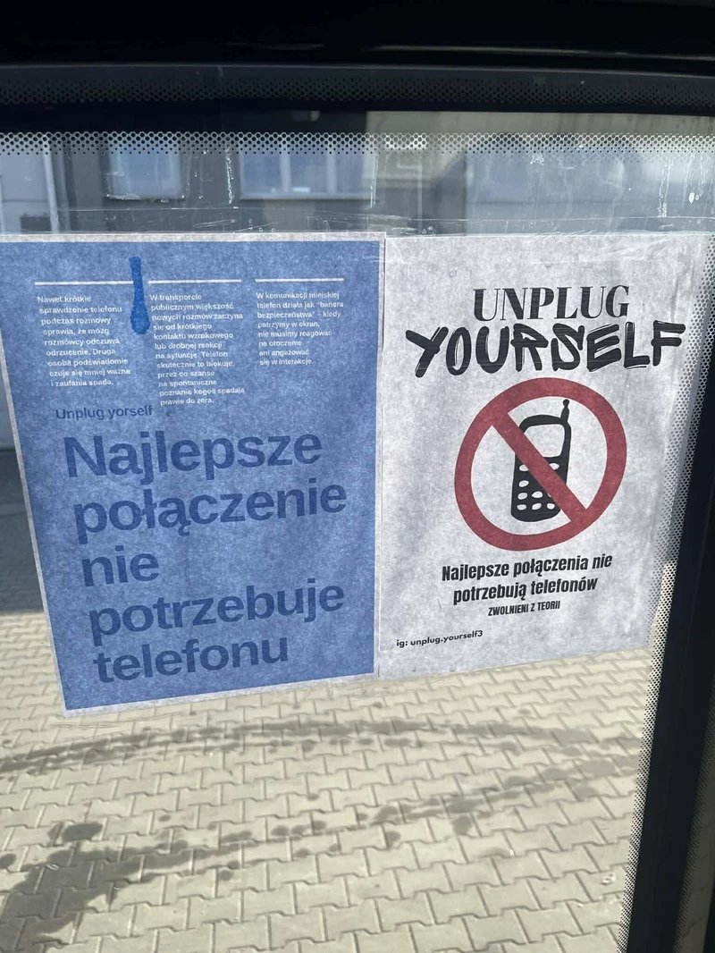 Plakaty uczniów naszej szkoły pojawiły się w Rejonowym Przedsiębiorstwie Komunikacyjnym – można je zobaczyć, jadąc miejskimi autobusami w drodze do szkoły. Projekt Unplug Yourself realizowany jest w ramach Olimpiady Zwolnieni z Teorii i ma na celu pomóc młodym osobom znaleźć równowagę w świecie pełnym ekranów.