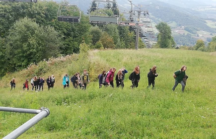 Uczniowie naszej szkoły wdrapują się na Kamionną.