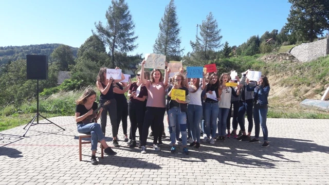 As every year first-graders from our school went on an integrating tour to reach the top of Kamionna mountain. For some of them it was the first more challenging hike in life. Fortunately, everybody managed to reach the destination where they were welcomed with sausages, tea and beautiful views. After the meal each class presented themselves and we happily returned to our school.