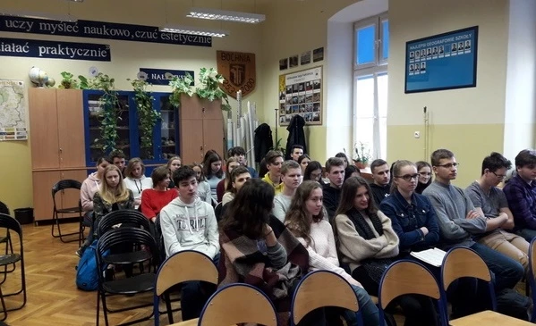 On December 17, a historical conference was held in our school. It was a final event closing the celebrations of the 100th anniversary of Poland’s regaining of independence. Students from classes 3a,3e and 2f listened to interesting speeches given by the invited guests. First, Mrs Zofia Sitko, representing the Society of Friends of Bochnia, talked about our town and its inhabitants in 1918 and the very moment when Bochnia regained independence. Later, Mr Mirosław Mroczek – a historian, collector and a photographer spoke about the course of military operations in our poviat in the years 1914-1915 and gave a presentation about the First World War cemeteries in our area, talking about their beginnings, assumptions and architecture.