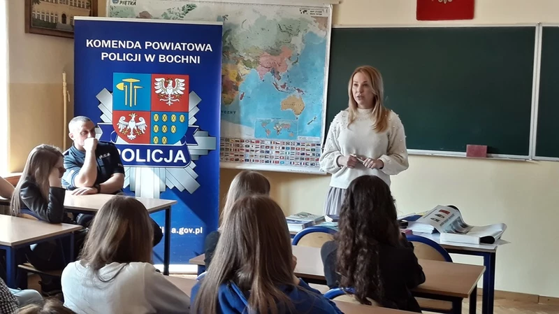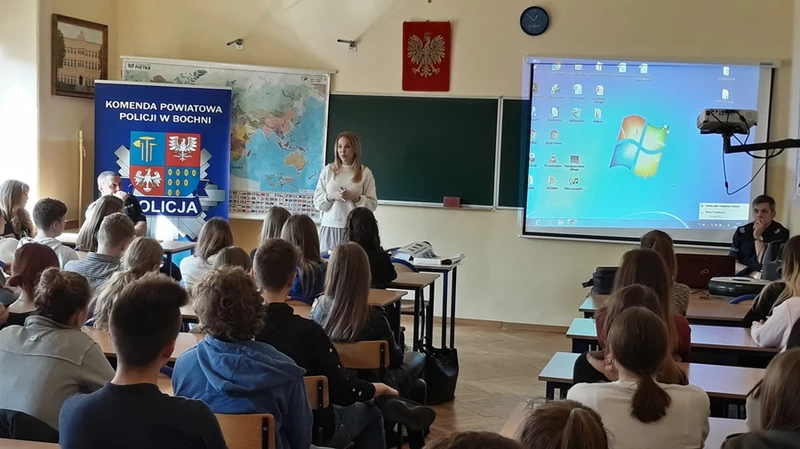 Police officers and a psychologist from the Psychological and Pedagogical Counselling Centre in Bochnia imformed young people what risks are associated with using the Internet and also warned us against publishing personal information in popular social networks. Our guests also talked about legal consequences of various ill-considered behaviours on the Internet.