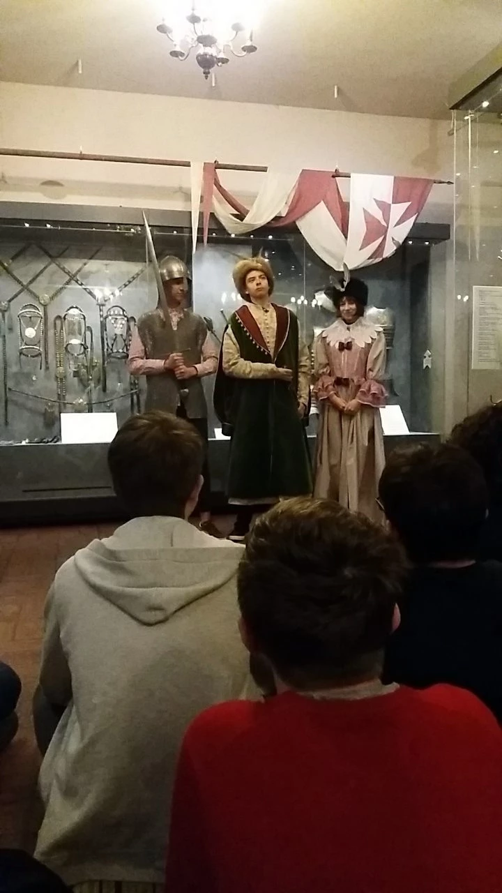 Naszym celem było obejrzenie sztuki pt. "Poskromienie złośnicy" w teatrze im. Ludwika Solskiego w Tarnowie. Moim zdaniem sztuka teatralna wypadła bardzo dobrze i z chęcią wybrałabym się do tego teatru po raz drugi. Zarówno humor, jak i gra aktorska przypadły mi do gustu. Po udanym spektaklu udaliśmy się do ratusza, gdzie czekała na nas ciekawa prelekcja o Sarmatach. Dowiedzieliśmy się tam dużo o portrecie szlacheckim. Co ciekawe, było tam bardzo mało obrazów przedstawiających dzieci - w tamtych czasach uważano, że nie warto je portretować. W oczy rzucała się również podobizna chłopa, którego można było poznać po zaniedbanym wyglądzie i widocznym na twarzy zmęczeniu. Obrazy te były bardzo imponujące! Następnie udaliśmy się na krótki wykład o husarii, urozmaicony o przymierzanie tradycyjnych szlacheckich strojów oraz kolczugi. Mieliśmy również przyjemność obejrzeć pięknie zdobione zbroje. Moim zdaniem wycieczka wypadła świetnie. Warto wybrać się do Tarnowa!