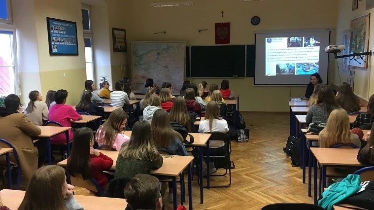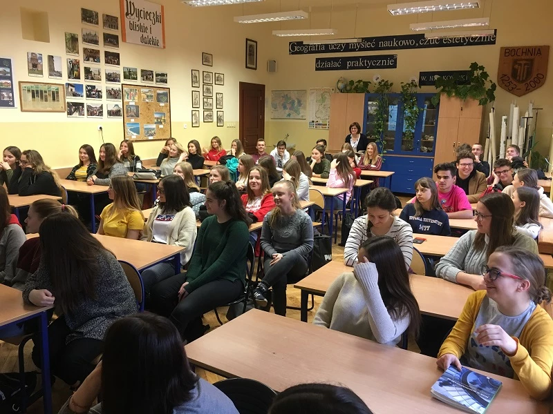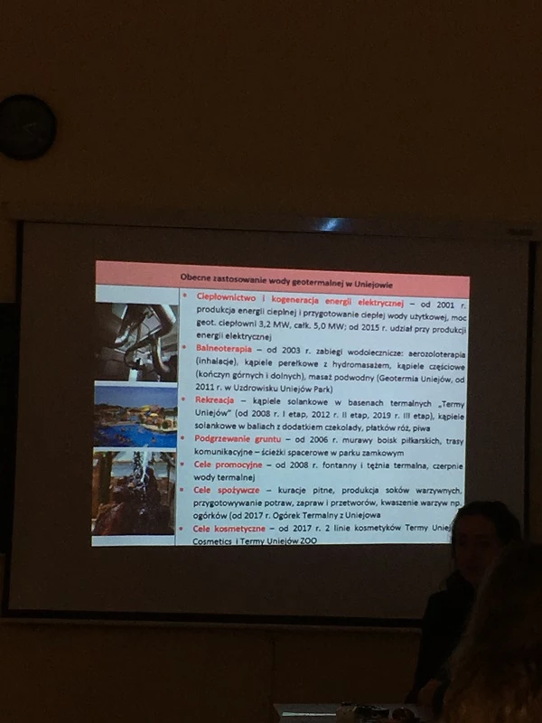 On November 23, took place the third Geography meeting related to the educational project "On the benefits of studying geography and related fields". The guest was Mrs Dr. Karolina Smętkiewicz from the Department of Entrepreneurship and Spatial Management at the Institute of Geography of the Pedagogical University. The theme of the lecture was "Uniejów Thermal Spa - a recipe for success and dynamic local development".
