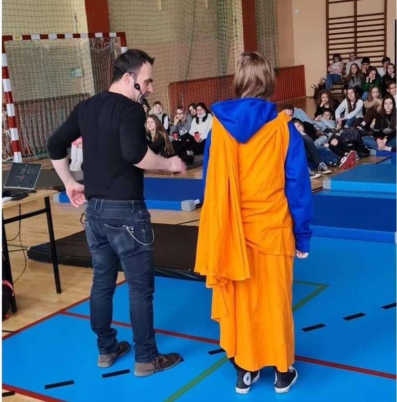 W dniu 31.03.2022r. w naszej szkole odbyło się spotkanie z podróżnikiem z grupy Trzask.pl. Nasz gość opowiadał w interesujący sposób o Wietnamie i Kambodży- pokazywał zdjęcia, prezentował na uczniach tradycyjny strój mnicha i przytaczał liczne ciekawostki.