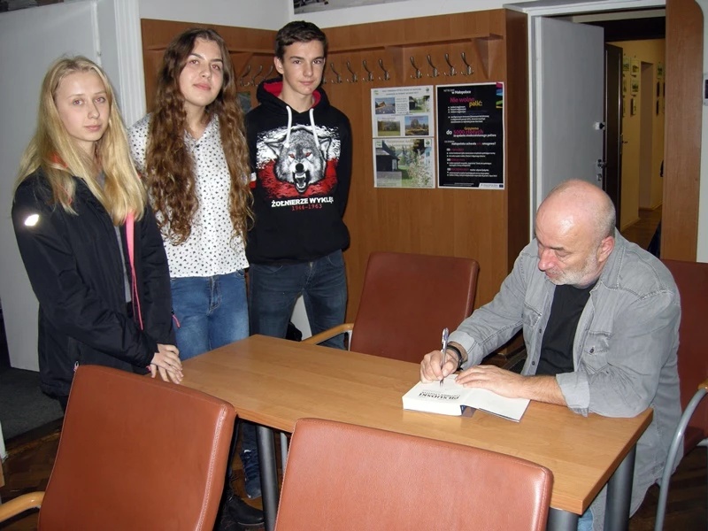 Opowieść ubarwił licznymi anegdotami i ciekawostkami z życia bohatera oraz ówczesnych elit politycznych i artystycznych. Zorganizowane przez Powiatową i Miejską Bibliotekę Publiczną wydarzenie zamykało realizację projektu „Sylwetki niezwykłe”. Pisarz spotkał się również z naszymi uczniami, wpisując dedykację i autograf w książce ze szkolnej biblioteki.