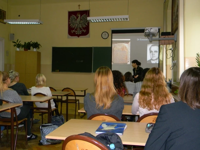 Dwugodzinne warsztaty poświęcone udziałowi Polaków w ratowaniu Żydów w czasie drugiej wojny światowej przeprowadziła w naszej szkole dr Joanna Lubecka, pracownik krakowskiego oddziału Instytutu Pamięci Narodowej. Uczestnicząca w nich klasa 2e miała okazję poznać nie tylko ogólne liczby; uratowanych i zamordowanych. Pani Lubecka przestawiła historie i relacje konkretnych ludzi, ratujących i uratowanych, czasami z romantycznym zakończeniem. W spotkaniu nie zabrakło także odniesień do wielkiej polityki i powracających problemów w stosunkach polsko-żydowskich. Nie zabrakło także pytań uczestników.
