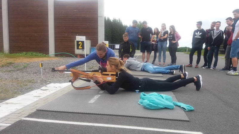Wreszcie nadszedł wyczekiwany trzeci dzień naszej wizyty. Zanim usłyszeliśmy ostateczne wyniki Matematycznej Ligi Zadaniowej udaliśmy się na trasy biegowe dla biatlonistów, gdzie mogliśmy spróbować swoich sił w strzelaniu z karabinka. Trzeba przyznać, że poszło nam bardzo dobrze!