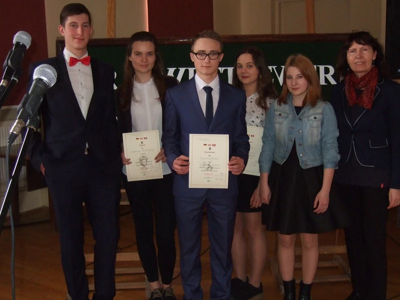 Our students participated in the German poetry recitation contest in Tarnów on March 10th. Our representatives were Julia Waśkowicz from class 1d, Gabriela Gut and Krystian Pieprzyk from class 1i, Magdalena Żelichowska and Sławomir Gicala from class 3 b. We are happy to announce that Magdalena Żelichowska got the second place, and Julia Waśkowicz and Krystian Pieprzyk received a special distinction. The students were prepared for the contest by teachers Anna Czaja and Beata Walecka. Congratulations!