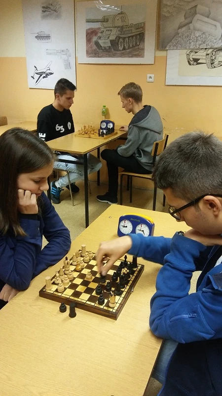 We wtorek rozegrano w naszej szkole zawody szachowe. Na dystansie 7 rund, z kompletem punktów znalazła się Weronika Łęczek, Ola Augustyn oraz Piotr Makarewicz. Tuż za nimi uplasował się Filip Skipioł.