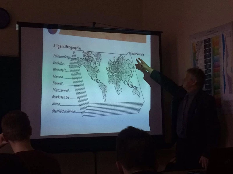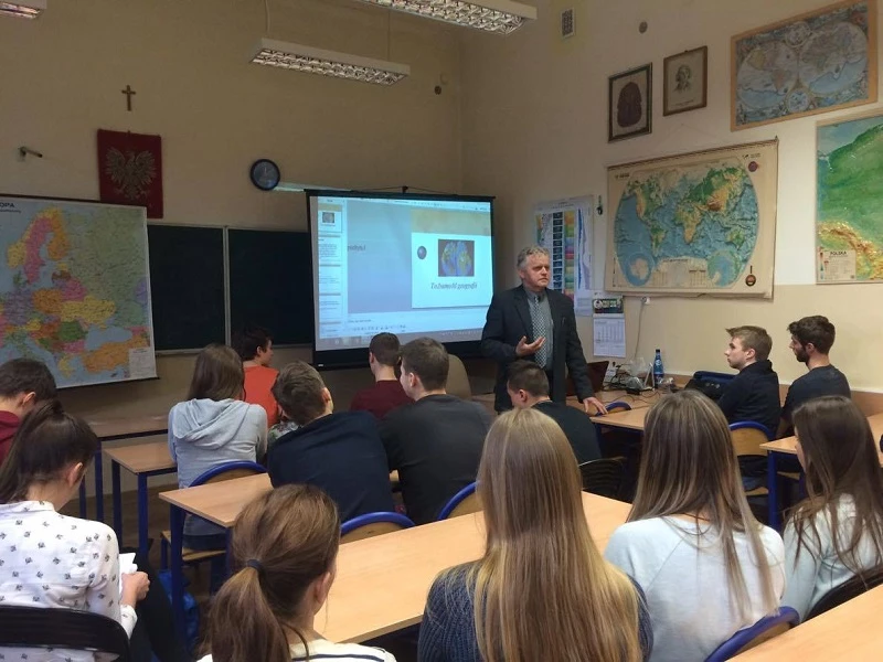 Prof. Witold Wilczyński from the Pedagogical University of Cracow visited our school on Monday to talk about geography. His interests are in the fields of philosophy as well as political and regional geography. Classes 2g i 3g attended the lecture where the Professor talked about the identity of contemporary geography and its role in society. After a very interesting talk and multimedia presentation there was also time for questions and discussion.