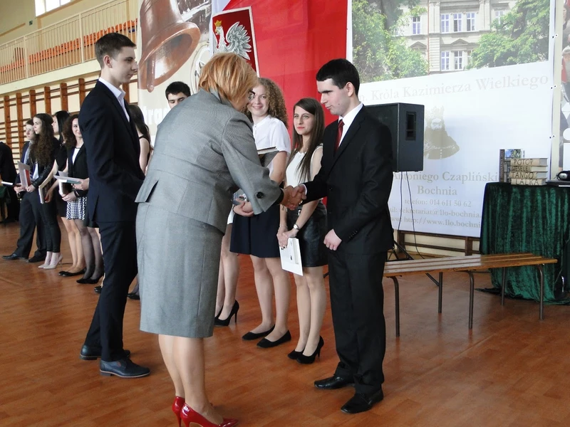 Jednym szybciej innym wolniej minęły trzy lata nauki w I Liceum w Bochni. W piątek pożegnaliśmy absolwentów z rocznika 2015. Szczególnie uroczyście żegnaliśmy finalistów centralnego etapu olimpiad; Iwonę Krok finalistkę Olimpiady Polonistycznej i Sarę Szewczyk finalistkę Olimpiady Teologicznej, które otrzymały wyróżnienie "Sapere Auso". Za nimi podążyło bardzo liczne grono finalistów i laureatów konkursów i olimpiad, wśród nich grupa absolwentów, dla których liczy się tylko zdanie matury, bo już w trakcie nauki w I Liceum zdobyli indeksy wyższych uczelni. Nie zabrakło oryginalnych pożegnań i pomysłów na pozostanie w pamięci kolegów i nauczycieli. Odchodzi kolejny rocznik tworzący historię I Liceum, życzymy mu; miłych wspomnień ze szkoły i powodzenia na egzaminie maturalnym. A ten już ... w poniedziałek 4 maja