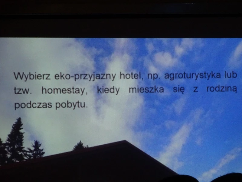 Before Christmas, we hosted Mrs. Izabela Buffalo - Lloyd, who studied food anthropology at SOAS University of London and is an avid traveller and blogger. The subject of the meeting was "Sustainable tourism - responsible travel". We could learn how to travel responsibly without disturbing the balance in the environment. In the first part of the meeting, students were asked to provide their own insights and ideas for responsible travelling in three dimensions: People - Environment - Animals. In the second part, the lecturer, using her own travel experiences in Europe and Asia, presented examples of sustainable tourism and gave us some useful tips on how to become responsible tourists. The meeting was attended by classes 1d, 1g, 2g.