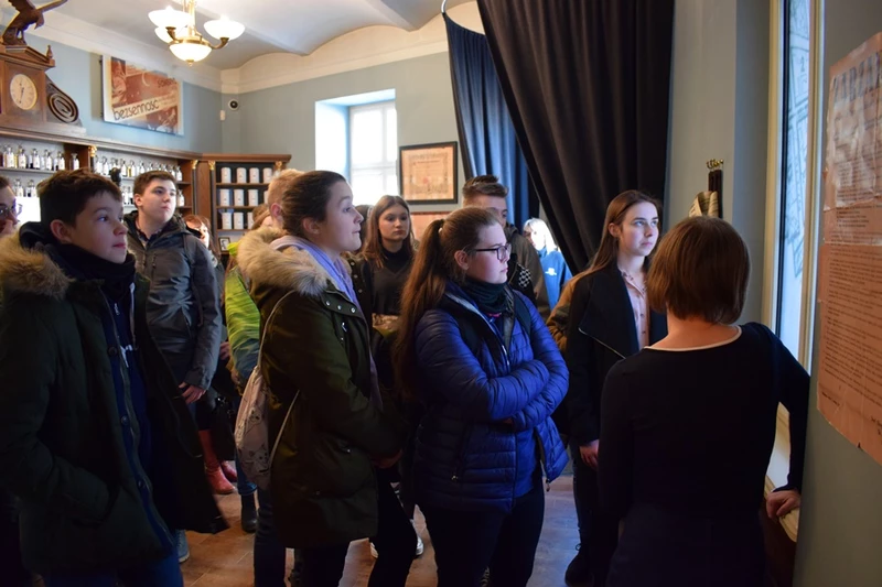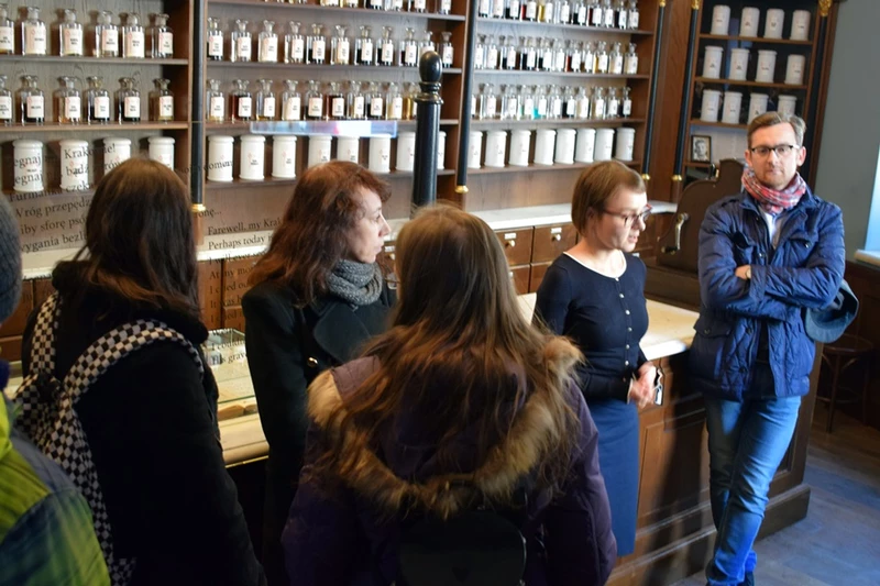 z wiekiem totalitaryzmów i ludobójstwa. Wprowadzający wykład przyniósł nam niezbyt optymistyczne przesłanie „ zmieniają się czasy i okoliczności nie zmienia się natura człowiek”. Wykładowca postawił źle rokująca dla nas tezę, że rozwój technologicznych możliwości kontroli społeczeństwa może dać pewnego dnia komuś możliwość wprowadzenia totalitaryzmu w tak perfekcyjnej formie o jakiej nie śnili Hitler i Stalin. Zaskoczyło nas pytanie o użyteczność facebooka dla Józefa Stalina. Drugą część spotkania stanowiły zajęcia warsztatowe na terenie dawnego getta krakowskiego na Podgórzu, gdzie odwiedziliśmy Aptekę pod Orłem i ważne miejsca byłego getta.