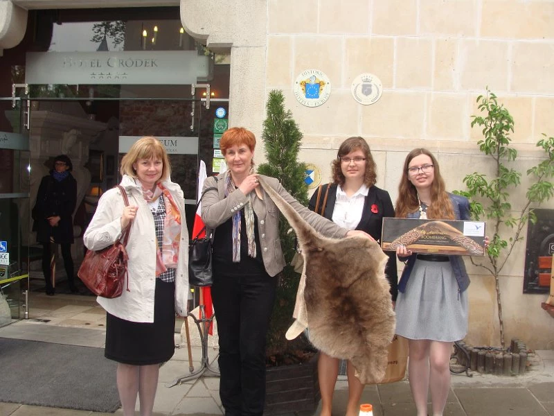 Wśród wielu nagród dla najlepszych, na uwagę zasługuje oryginalny wykonany przez Aborygenów bumerang oraz wyprawiona skóra z kangura, w której posiadanie weszła Iwona. Po części oficjalnej udaliśmy się do nowozelandzkiej restauracji aby degustować egzotyczne dania. Raz jeszcze gratulujemy naszym uczennicom wysokich wyników i życzymy dalszych sukcesów.