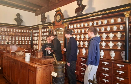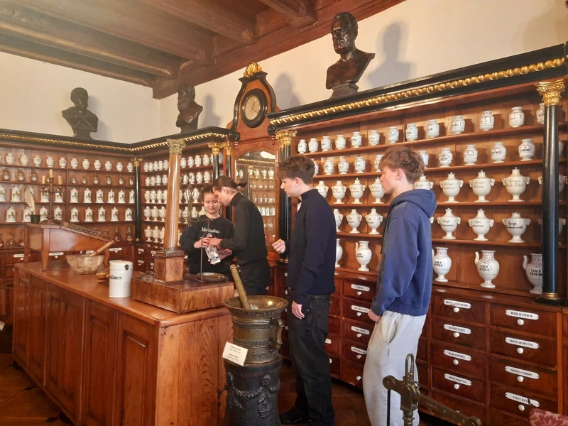 W piątek 17.04 klasa 1d udała się do Muzeum Farmacji w Krakowie, aby odkryć początki dawnego aptekarstwa, tworzenia leków i poszukiwania antidotum na różne bolączki od zawsze nękające ludzkość. Uczniowie z zaciekawieniem przyglądali się eksponatom, pośród których wytropili m.in buteleczkę pochodzącą z apteki salinarnej z Bochni, a nawet... sproszkowany róg jednorożca. Z entuzjazmem buszowali po strychu pełnym zasuszonych roślin jak i w laboratorium alchemicznym w towarzystwie nietoperzy. Wizyta ta na pewno pozostanie na długo w pamięci zwiedzających.