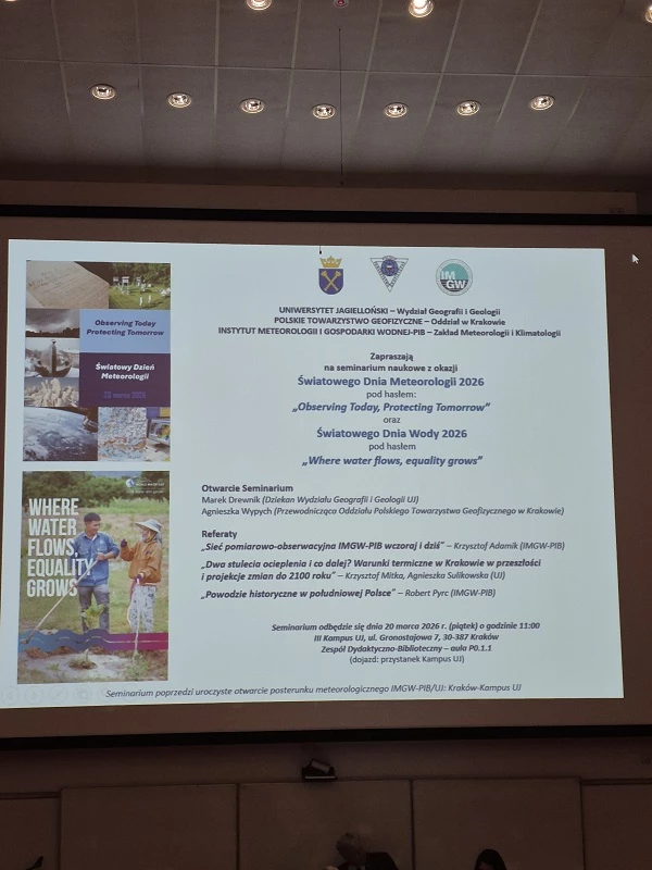 W ramach współpracy z Instytutem Geografii i Gospodarki Przestrzennej Uniwersytetu Jagiellońskiego uczniowie z klasy 2g wzięli udział w Światowym Dniu Meteorologii i Światowym Dniu Wody. Wysłuchali referatów min. o zmianach klimatu w Krakowie i powodziach w południowej Polsce.