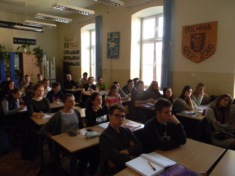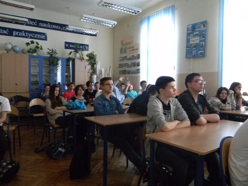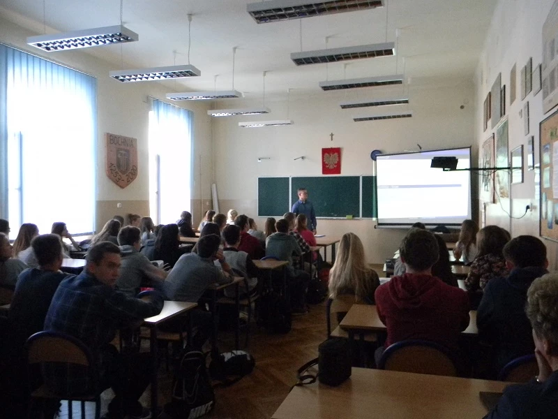 On Sept. 30th we took part in a meeting with a former student of our school Andrzej Madej. The audience consisted of classes 2b, 2h, 3a, 3b, 3g and 3h. Our guest showed us how mathematics can be used in cryptography. The meeting started with an anecdote about Alice who needed to send a message to Bob but had to code it so that jealous Stefan could not read it. But later we moved on to more complicated things like letters, symbols, theorems and definitions as well as practical exercises. During two hours we learnt about different methods and systems of cyphering like Caesar cipher, Vigenere cipher or ElGamal encryption system. It was a lot of fun!