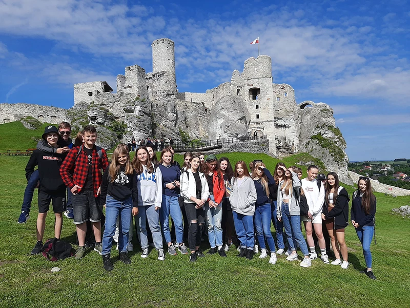 Jest on umiejscowiony na najwyższym wzniesieniu Jury, a pierwsze wzmianki o budowaniu sięgają XII wieku. Najświetniejsze dla zamku czasy przypadają na XVI wiek. Wtedy Ogrodzieńcem opiekowali się Bonerowie. Malowniczość zamku docenił również Andrzej Wajda, który w 2002 roku wybrał zamek w Ogrodzieńcu na scenerię do filmu “Zemsta”. Uczniowie mieli możliwość poznania historii zamku. Wycieczka urozmaicona została ogniskiem integracyjnym i doskonałą zabawą w Parku Doświadczeń Fizycznych, gdzie można było sprawdzić jak działa np. symulator lotów, kołyska Newtona lub woda w wirującej kuli. Atrakcji było o wiele więcej. Było to zakończenie pracowitego roku szkolnego.