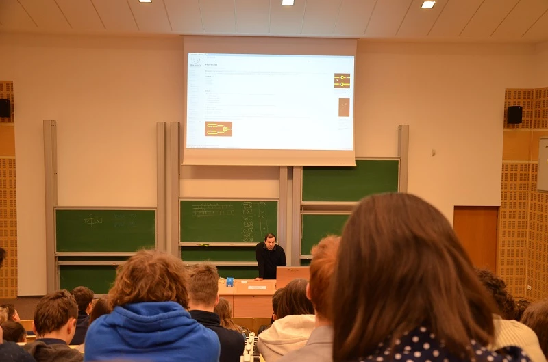 On January 13th classes 2b and 2h took part in a trip to Kraków, where they attended two lectures at Jagiellonian University. Together with teachers Elżbieta Jędros, Renata Guzik and Łukasz Konieczny the classes set off at 8:30 in the morning. At 10 o’clock we were already at the university so we still had some time to look around. First, we attended a Physics lecture entitled „Why do the physicists play with atoms?” which was given by Mateusz Wojtaszek,M.A. Then we moved on to the Faculty of Mathematics and Computer Science, where we listened to the second lecture about cellular automata. Marcin Kulczycki, PhD, talked about Conway’s Game of Life and Langton’s Ant. After the lecture there was a short quiz and one of our students took part in it. The trip was an interesting experience and we enjoyed it a lot.