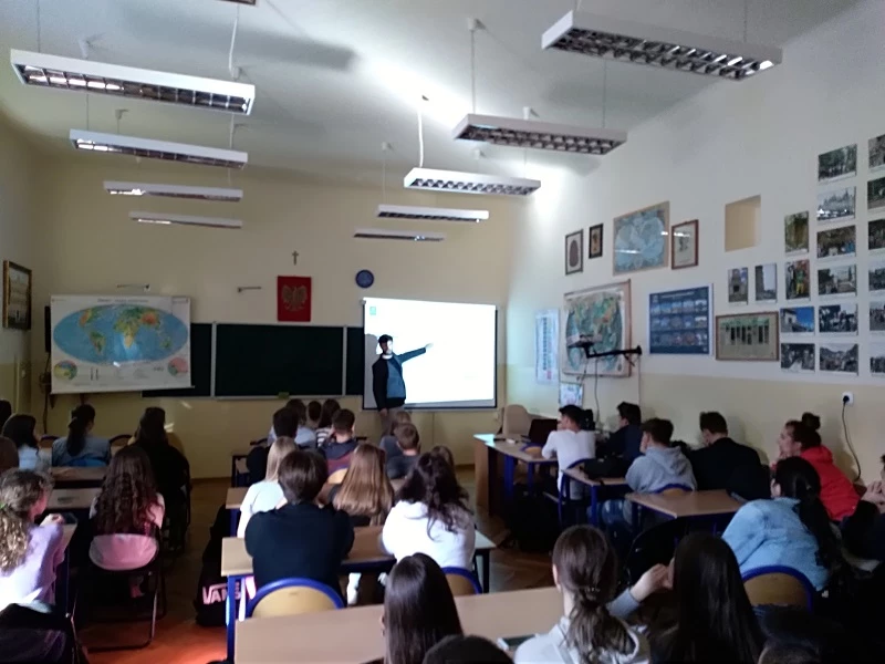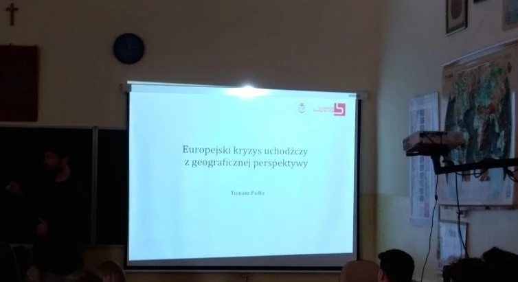 Recently, we have hosted in our school dr Tomasz Padło, a university teacher in the Department of Socio-Economic Geography of the Institute of Geography at the Pedagogical University in Kraków. The subject of the speech was: The European refugee crisis from a geographical perspective. The lecture took place as part of the educational project "On the benefits of studying geography and related subjects", which is carried out by our school together with the Pedagogical University. Doctor Tomasz Padło presented his observations from meetings with migrants and refugees during his trip to the islands of Lampedusa and Kos, and the Serbian-Hungarian, Macedonian-Greek and Turkish-Iranian borderlands. These people make the decision to leave their homes because their lives are at risk or, as in the case of Syrians, they lose their family members and all their belongings during the war. They set out on a long difficult journey and end up in refugee camps.The meetings and discussions with refugees made the speaker change his personal views on the so-called European migration crisis. And we could confront the image of the refugees presented by the Polish media with the actual state.