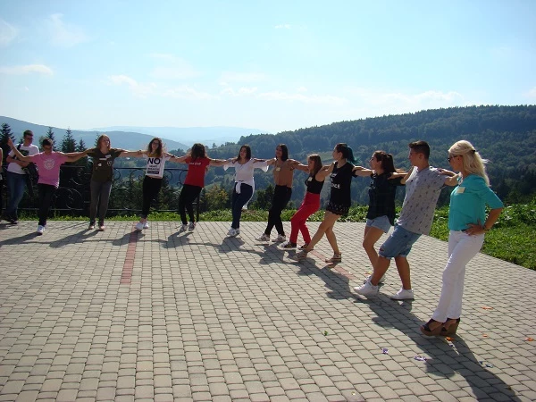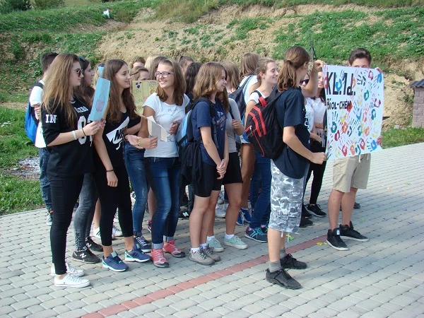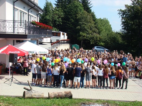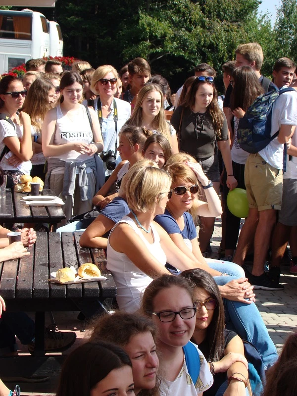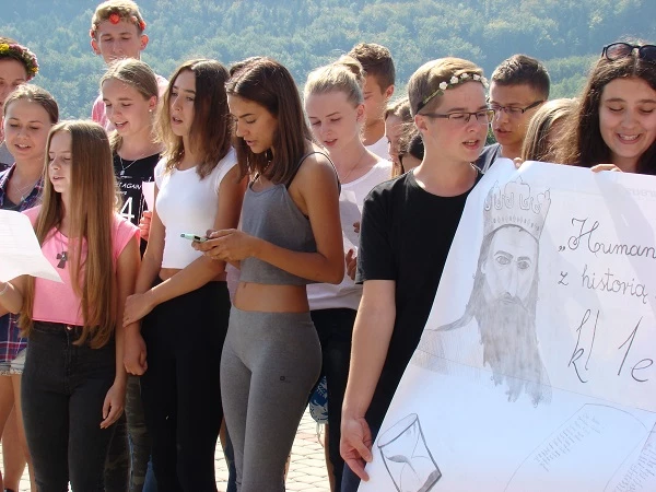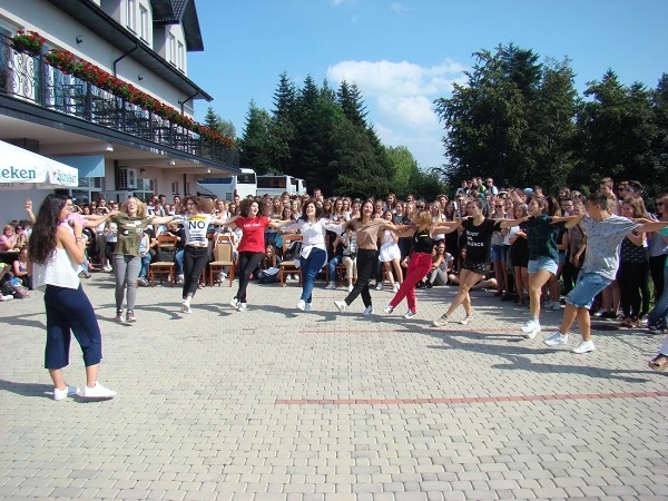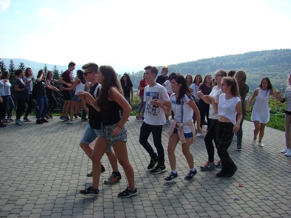 Once again the first-graders had to deal with difficult routes in order to reach the top of Kamionna mountain. The destination was the Sara hotel, where the students ate sausages and then presented some performances about themselves. There was also a surprise: a group of Greek students involved in the Erasmus+ project was staying at the same time at the hotel and they also took part in the show. They danced a Greek dance and sang a song for us. After the results of the competition were announced, everybody decided to have fun and danced with the Greeks.