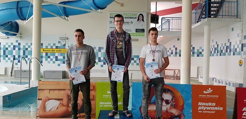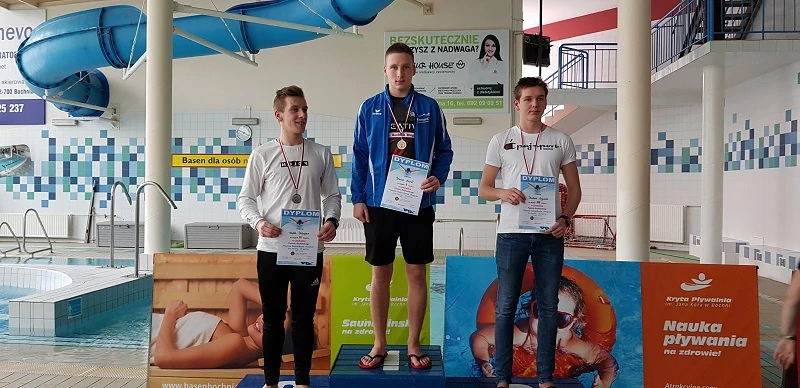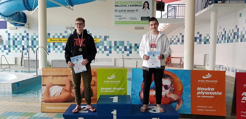 backstroke style: 1st place Wiktor Kocot, 3rd place Piotr Sieczka